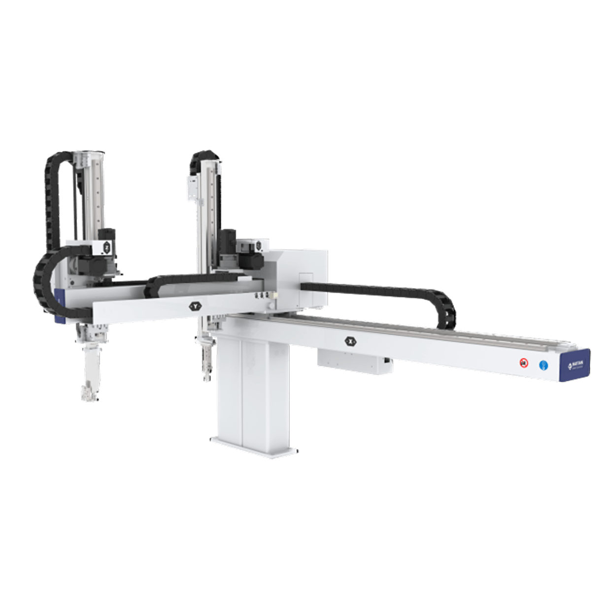 Die GA-SE Serie, ein vollständig servogesteuerter, fünfachsiger Hängemanipulator, eignet sich ideal für Szenarien, in denen sowohl Material als auch fertige Produkte gleichzeitig entnommen werden müssen.