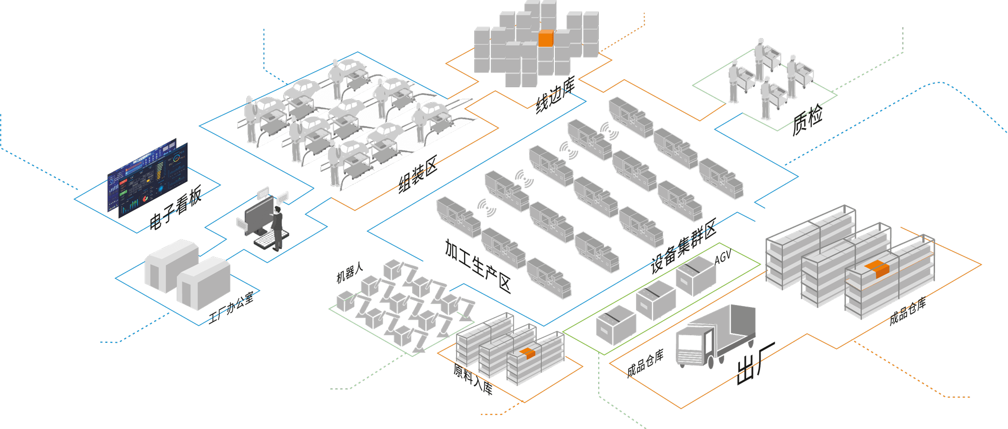 Local Deployment + Custom Development + Deep Integration of Smart Scheduling and Automation. This high-end smart factory system empowers enterprises above designated size, enabling holistic interaction between automation and informatization. It optimizes resource allocation at the factory level, boosts production capacity, enhances efficiency, eliminates bottlenecks, and facilitates intelligent decision-making.Through proprietary industrial gateways, edge computing peripherals, industrial apps, backend cloud computing, AI engines, and big data algorithms, the system delivers comprehensive empowerment across equipment status monitoring, production planning, process control, quality traceability, full lifecycle management, energy consumption data collection, decision analysis, and management output.