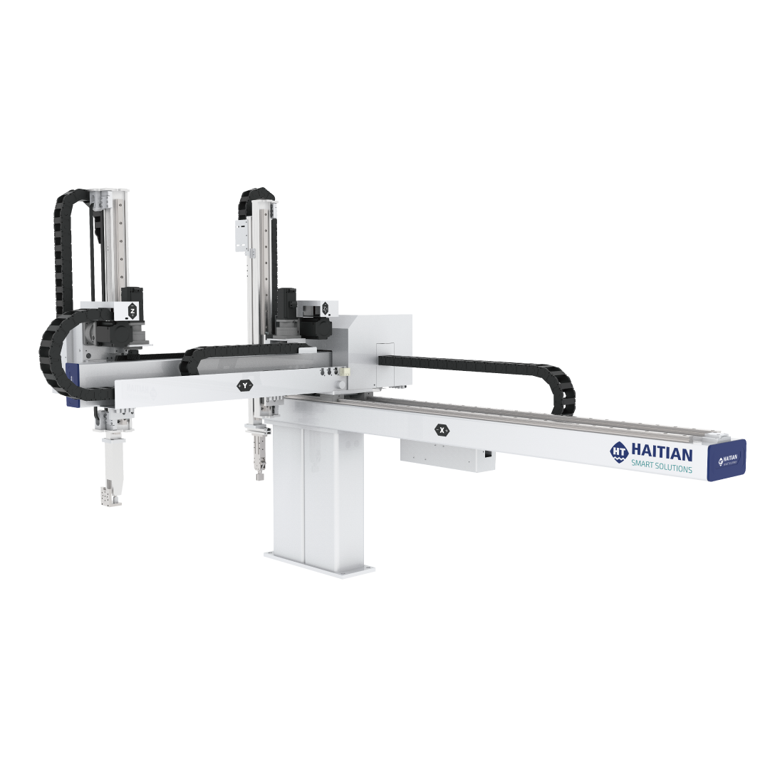 The GA-SEII series is a cost-efficient suspended robot for stable part handling in diverse injection molding applications.